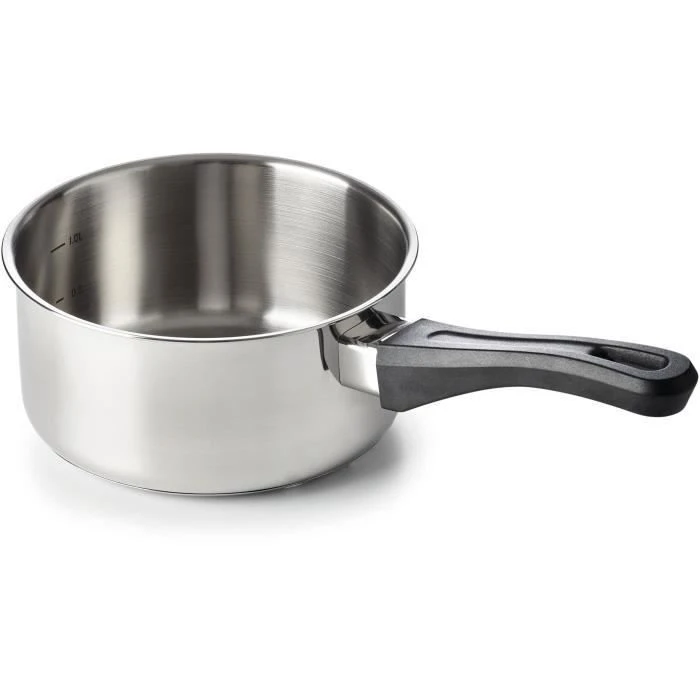 Casserole Polo 18 cm en acier inoxydable pour la cuisine classique – finition extérieure et intérieure brillante – forme droite – fond soudé capsulé pour une diffusion optimale de la chaleur – bord verseur permettant de verser facilement sans salir le plan de travail – tous feux + induction