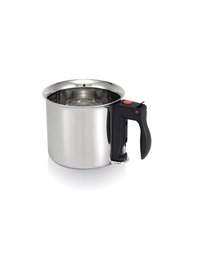 Réalisé en inox, ce bain-Marie est très utile pour cuisiner des sauces ou faire fondre du chocolat. Il suffit de mettre de l’eau dans l’ouverture qui se situe au niveau de la poignée, pour remplir l’espace présent entre les parois. L’eau sera chauffée, ce qui entraînera la chauffe indirecte de ce qu’il y a à l’intérieur du Bain Marie.