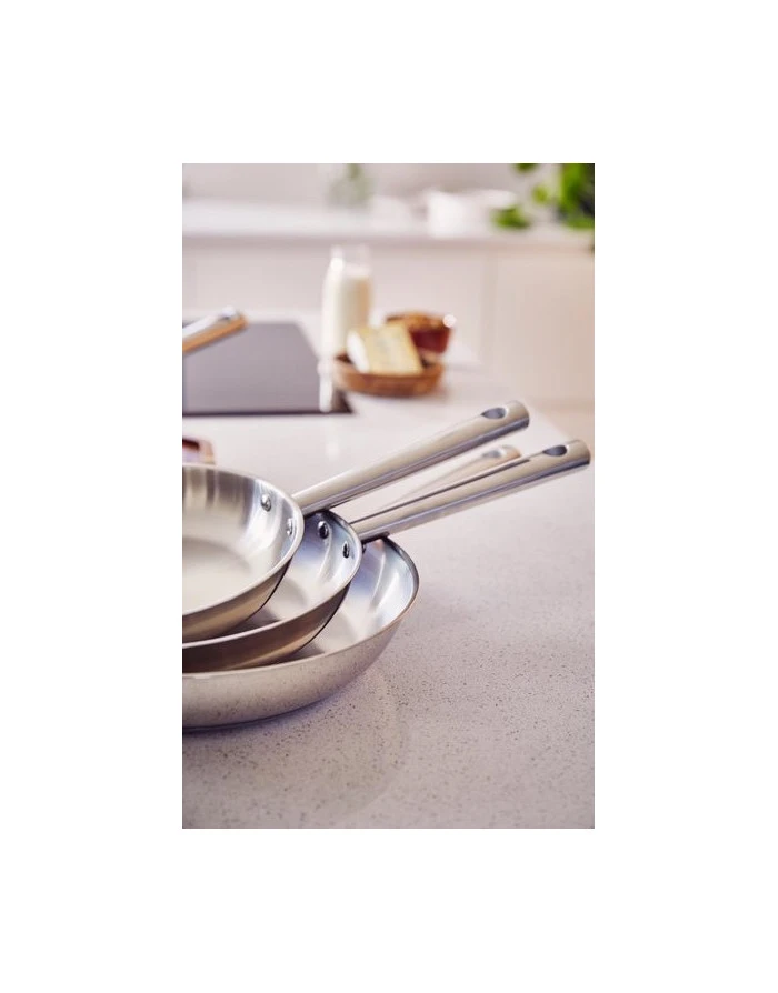 La poêle tout inox est disponible en 3 dimensions : 20 cm ; 24 cm et 28 cm