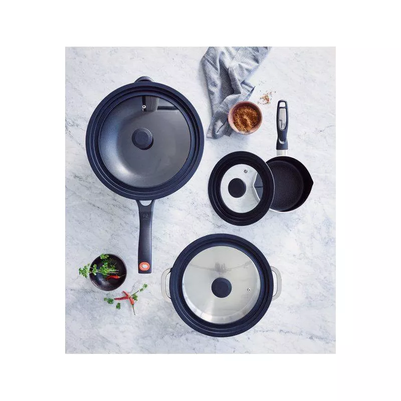 Le centre du couvercle est en verre résistant et comporte un orifice d’aération pour permettre à la vapeur de s’échapper, évitant ainsi le débordement et les clapotements de couvercle.