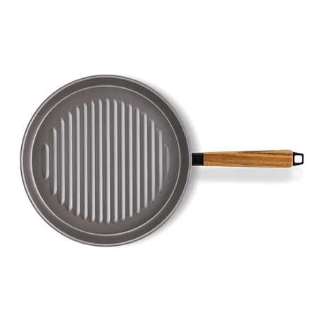 La marque Beka, spécialiste du matériel de cuisine haut de gamme, a créé la gamme Nomad pour offrir des poêles de qualité supérieure et à fort caractère. Inspirée par des tons et matériaux naturels, la grillette 28 cm Nomad dispose d’un manche en bois dur d’acacia d’une solidité à toutes épreuves et aux propriétés isolantes. Avec le temps, le bois changera de couleur et verra apparaître de petites fissures pour donner un aspect unique à votre poêle.
