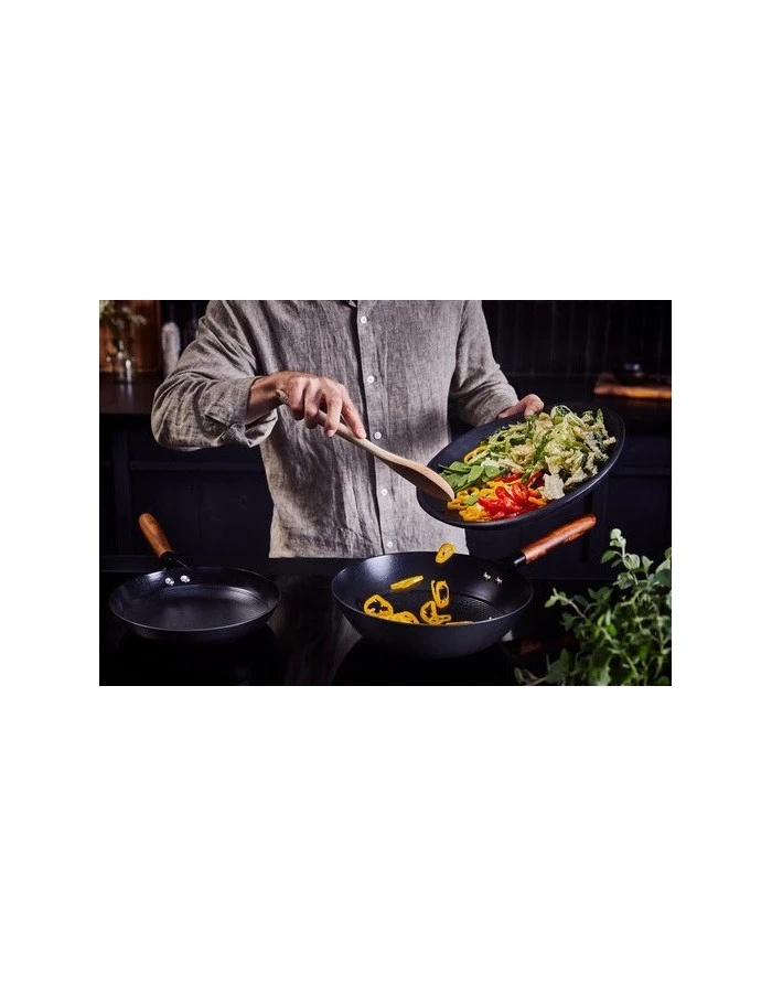 Élégante, la poêle Wok possède un manche en bois d’acacia qui est souvent utilisé car il possède des propriétés anti bactériennes naturelles.