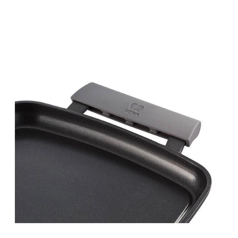 Plancha en fonte d’aluminium moulé, poignée en fonte recouverte de manique en silicone amovible restant froide pour un confort optimal.
