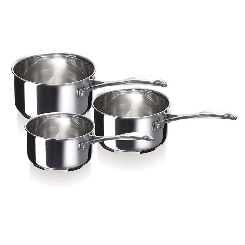 Casserole en inox poli, poignées ergonomique en fonte d’inox rivetée restant froide