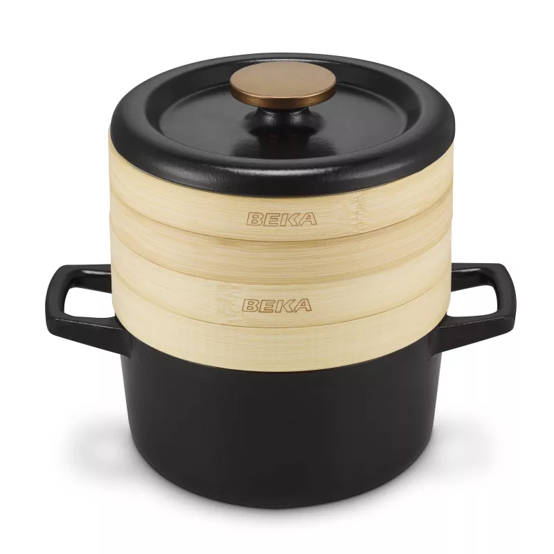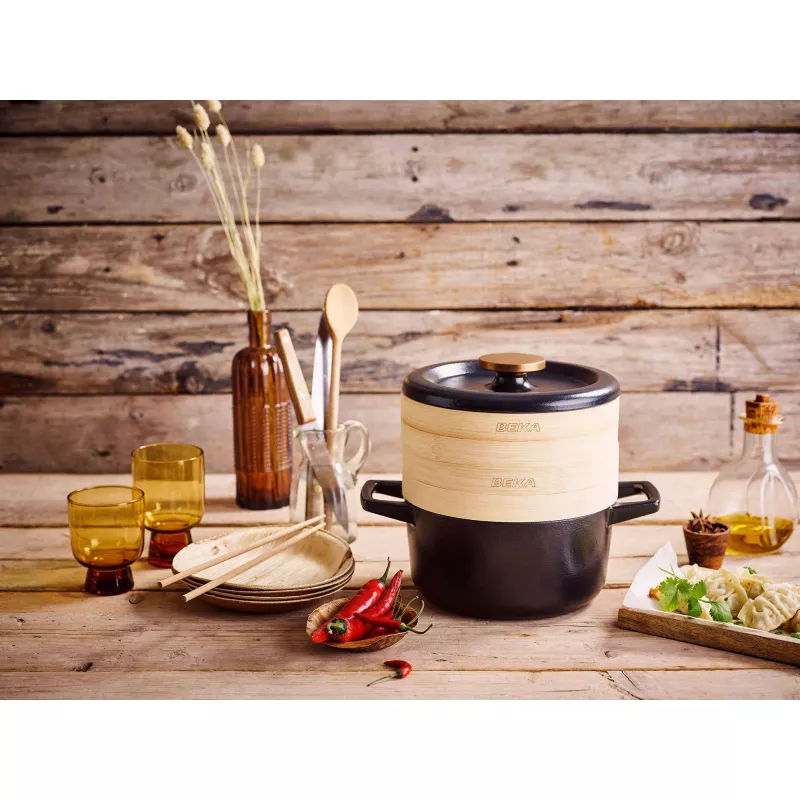 Ajouter les paniers en bambou et transformer votre cocotte en authentique cuit vapeur.