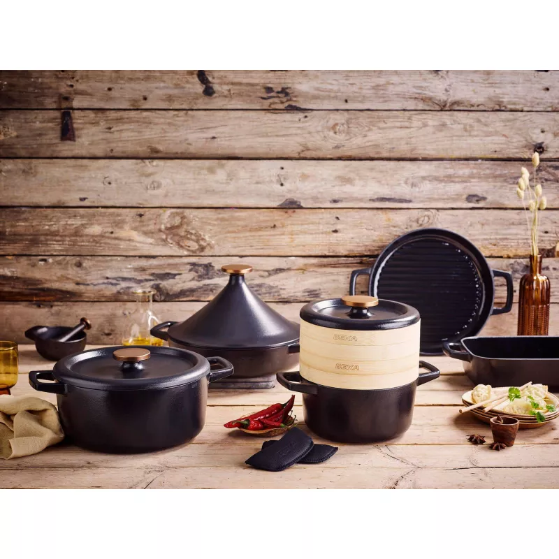 Rappelant l’algue du même nom, la cuisine nippone ou l’inspiration zen, les différentes pièces de la gamme nori revisitent les fondamentaux de la cuisson.