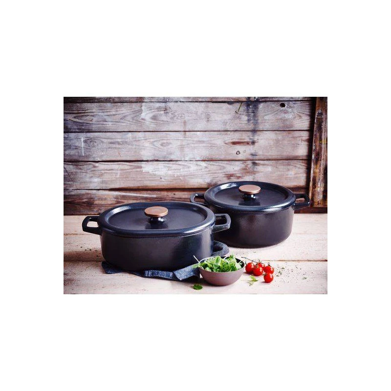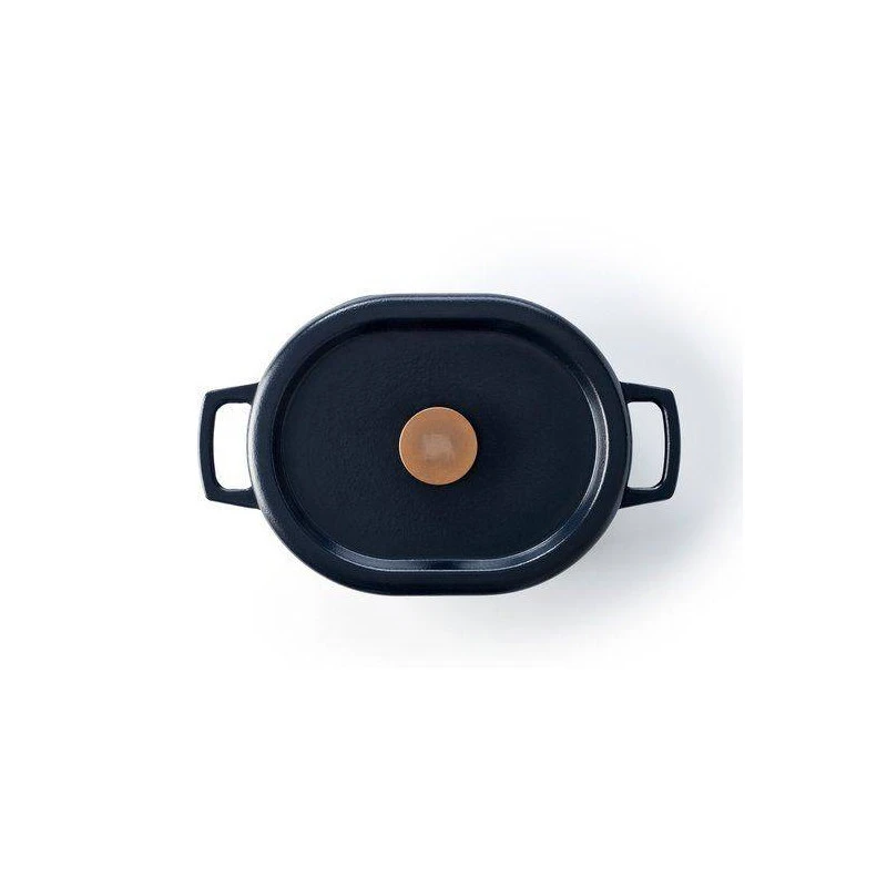 Format rectangulaire pour cette cocotte aux formes arrondies en fonte traditionnelle qui diffuse et préserve la chaleur de façon optimale.