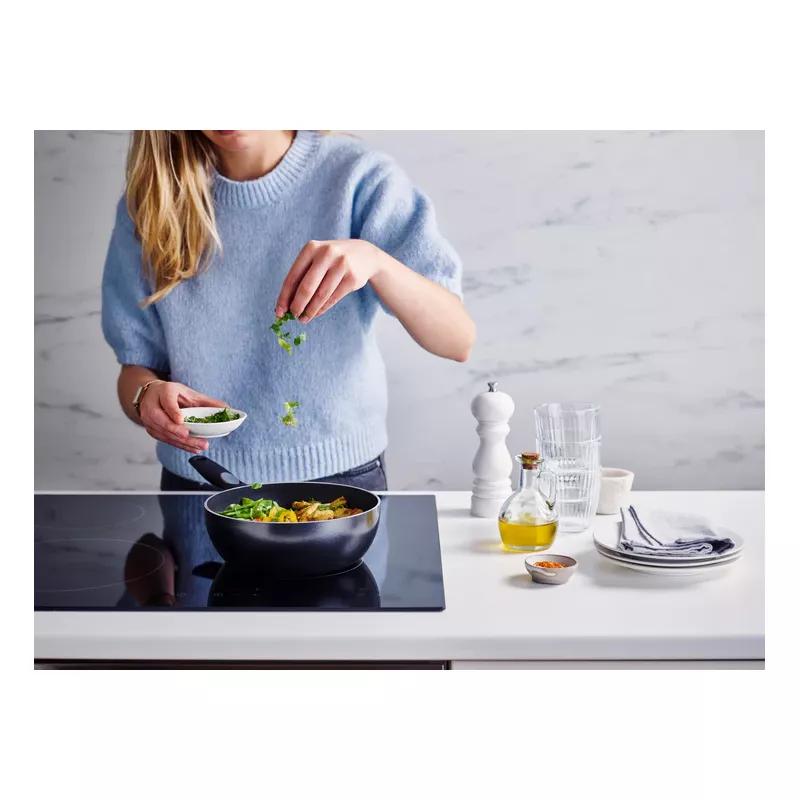 Excellentes propriétés antiadhésives. Il suffit d’une faible quantité de matière grasse pour cuire uniformément les légumes ou le poisson.